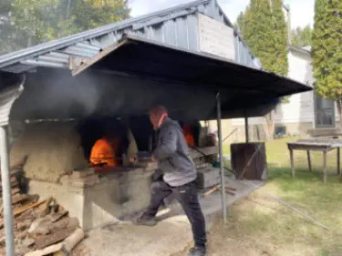 of his clay oven to the museum to bake bread.
